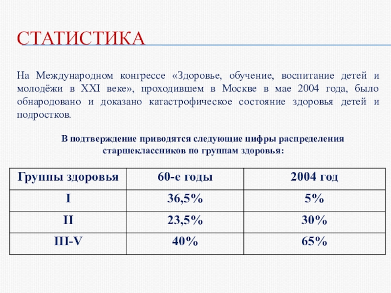 веке», проходившем в Москве в мае 2004 года, было обнародовано и доказано катастрофическое состояние здоровья детей и подростков.