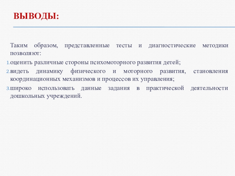 Таким образом, представленные тесты и диагностические методики позволяют: