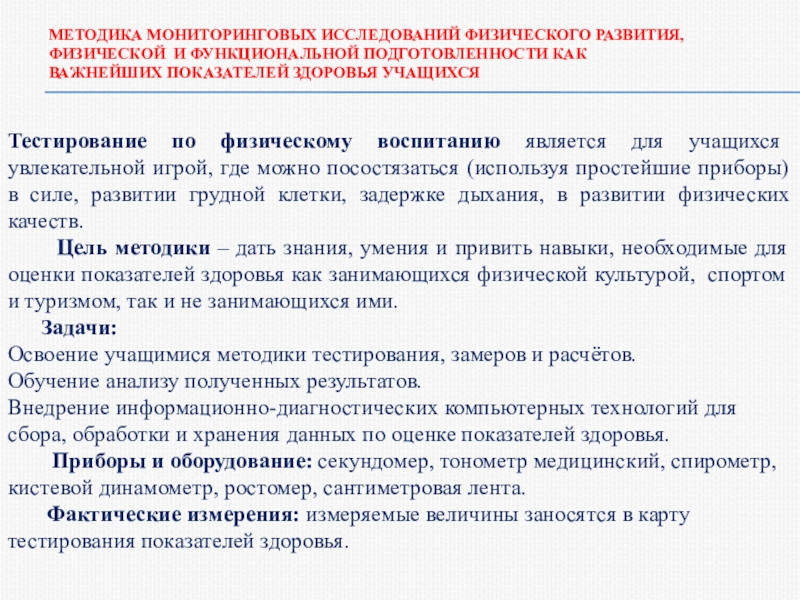 Слайд 6МЕТОДИКА МОНИТОРИНГОВЫХ ИССЛЕДОВАНИЙ ФИЗИЧЕСКОГО РАЗВИТИЯ,