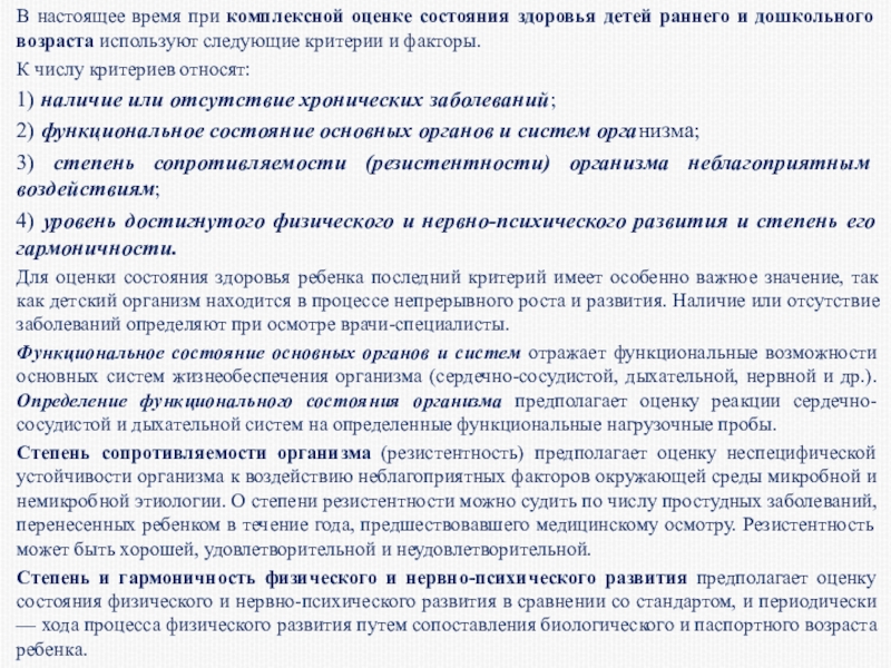 Слайд 9В настоящее время при комплексной оценке состояния здоровья детей раннего и