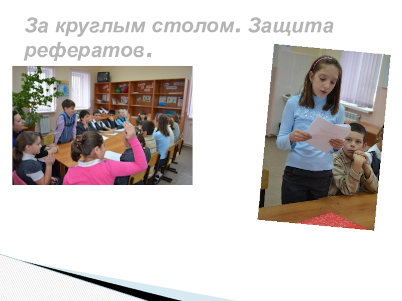 Слайд 4За круглым столом. Защита рефератов.