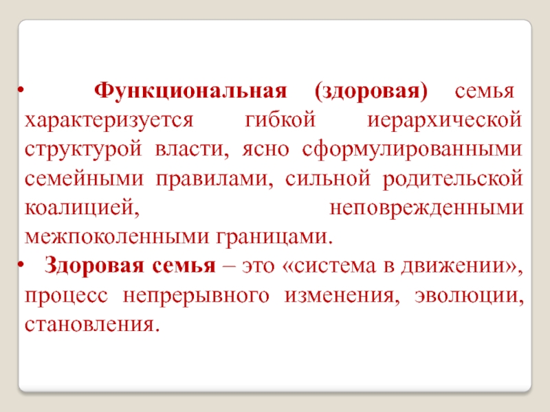 Здоровая семья – это «система в движении», процесс непрерывного изменения, эволюции, становления.