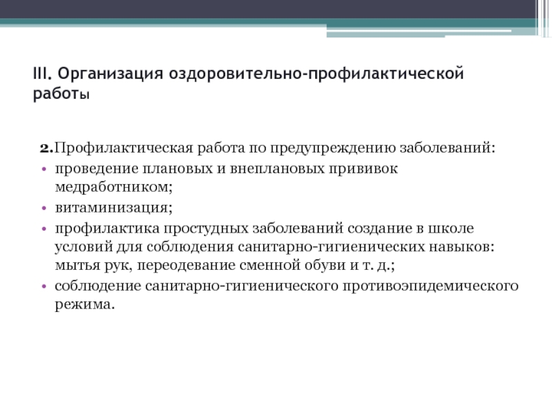 Слайд 6III. Организация оздоровительно-профилактической работы