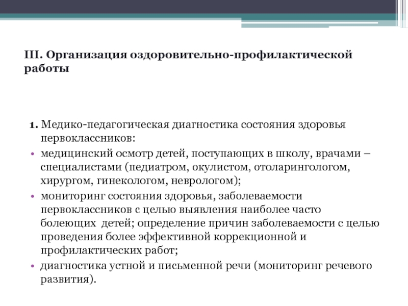 Слайд 9III. Организация оздоровительно-профилактической работы