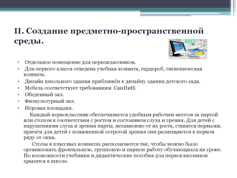 Слайд 5II. Создание предметно-пространственной среды.