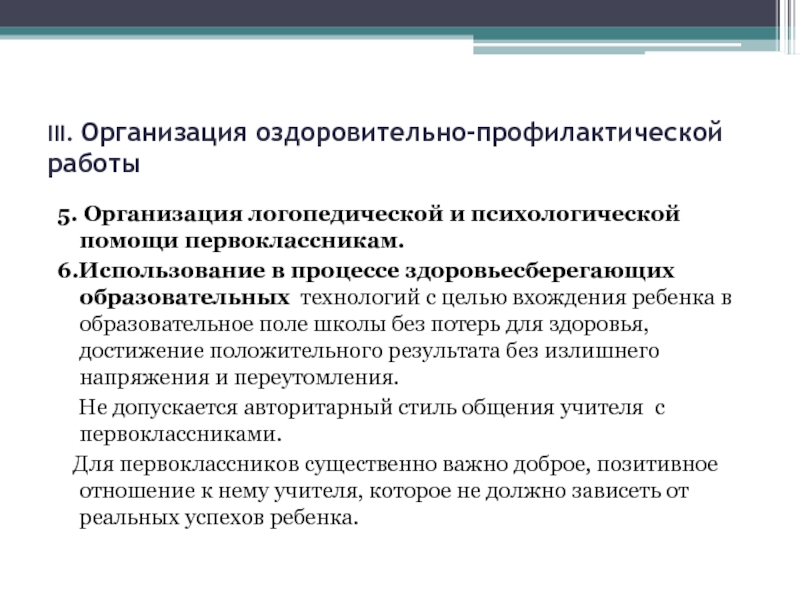 Слайд 8III. Организация оздоровительно-профилактической работы