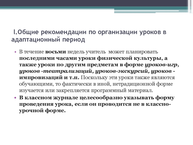 Слайд 4 l.Общие рекомендации по организации уроков в адаптационный период