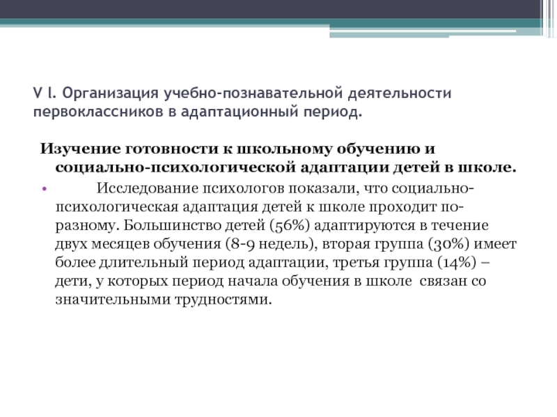 Слайд 17V l. Организация учебно-познавательной деятельности первоклассников в адаптационный период.