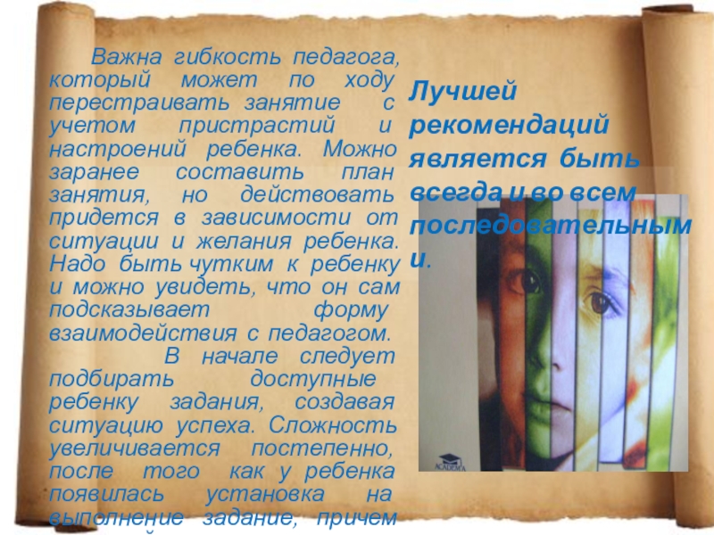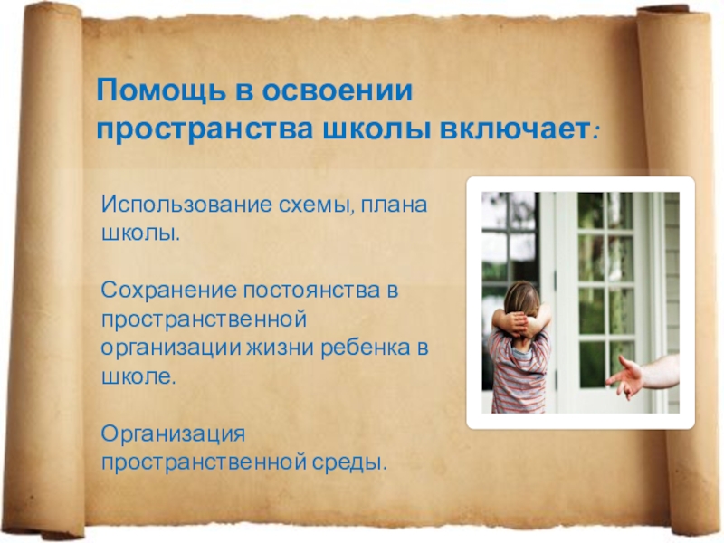 Ребёнку необходимо усвоение особенно четкого и стабильного расписания каждого текущего школьного дня с его конкретным порядком переключения .