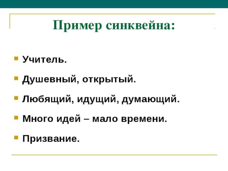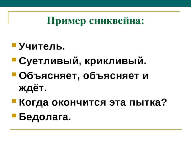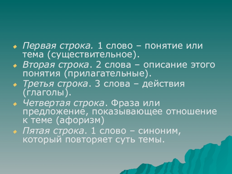 Пятая строка. 1 слово – синоним, который повторяет суть темы.