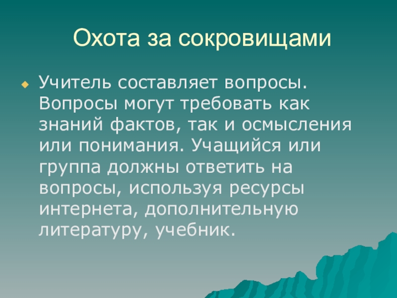 Учитель составляет вопросы. Вопросы могут требовать как знаний фактов,