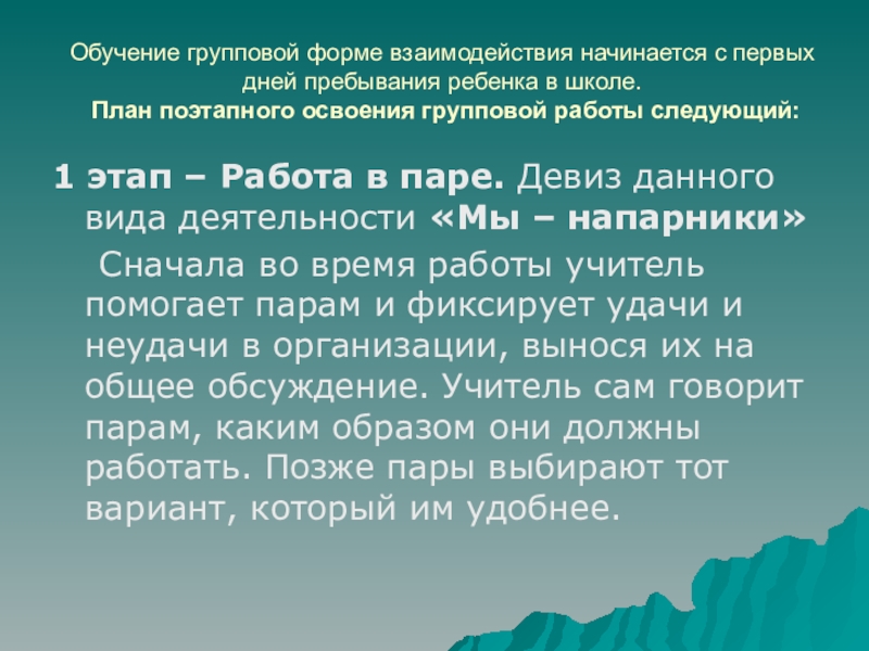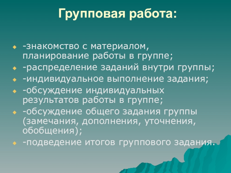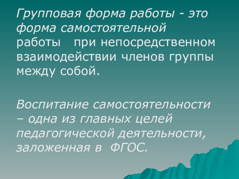Слайд 1Групповая форма работы - это форма самостоятельной работы при непосредственном