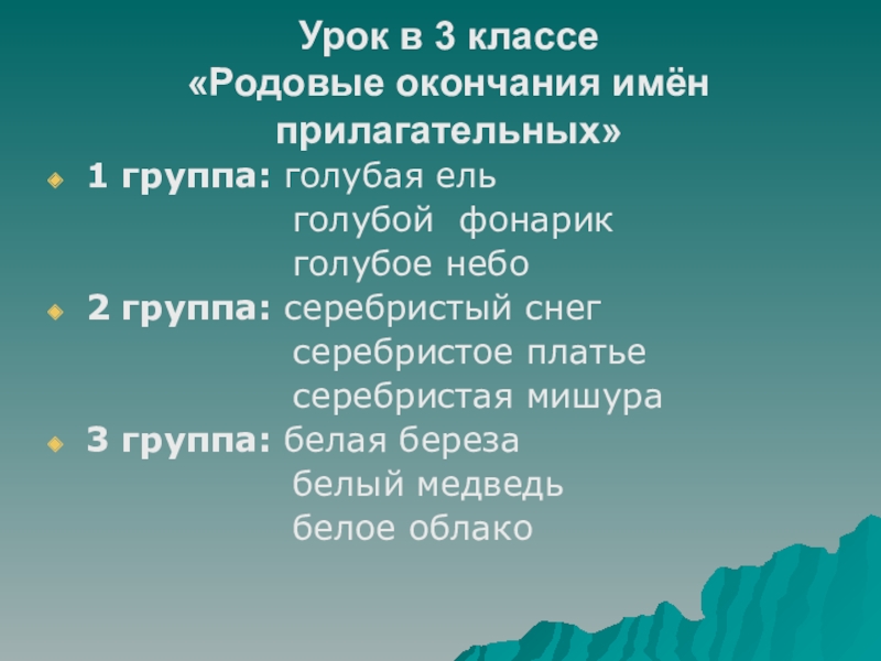 Выделите у имён прилагательных изменяемую часть – окончание.