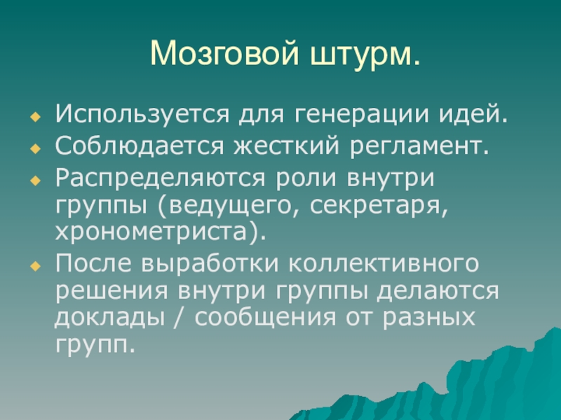 После выработки коллективного решения внутри группы делаются доклады / сообщения от разных групп.