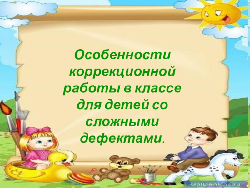 Презентация, доклад на тему Особенности коррекционной работы в классе для детей со сложными дефектами.