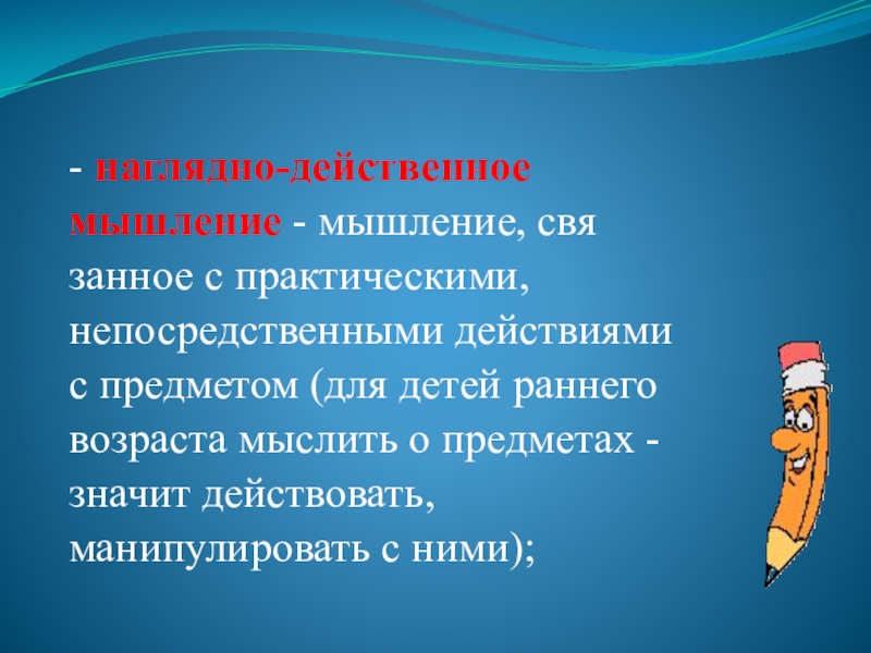 Слайд 12- наглядно-действенное мышление - мышление, свя­занное с практическими, непосредственными действия­ми с