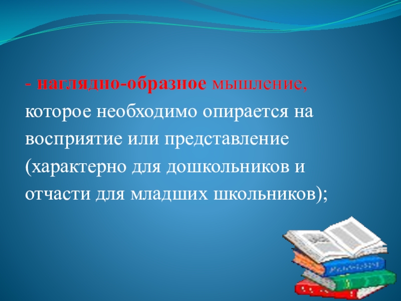 Слайд 13- наглядно-образное мышление, которое необходимо опи­рается на восприятие или представление (характерно