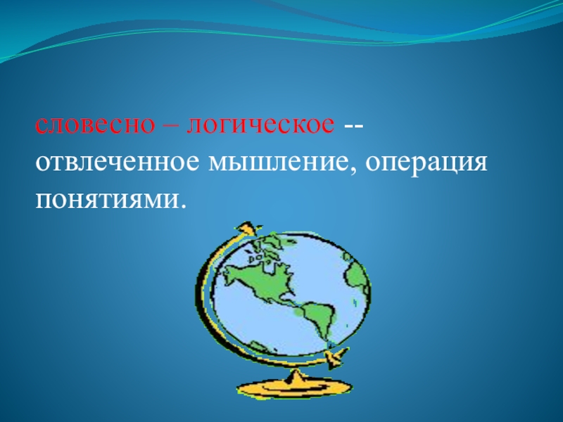 Слайд 14словесно – логическое -- отвлеченное мышление, операция понятиями.