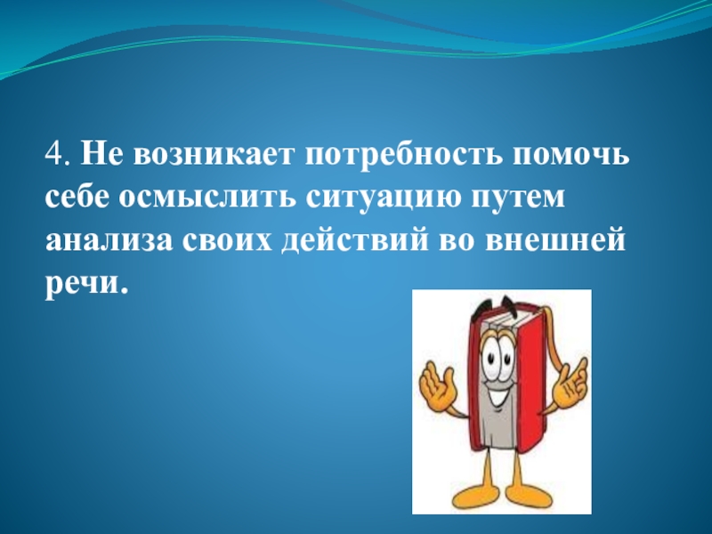 4. Не возникает потребность помочь себе осмыслить ситуацию путем анализа своих действий во внешней речи.