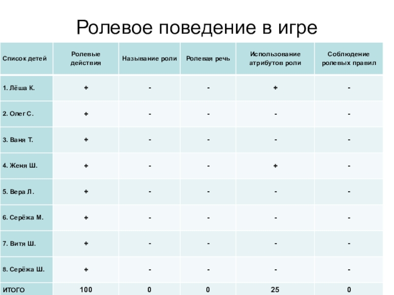 3. Проанализировать полученные данные и определить основные направления коррекционной работы, акцентирование на которых в процессе формирующего эксперимента, приведёт к повышению уровня сюжетно ролевой игры дошкольников с интеллектуальной недостаточностью.