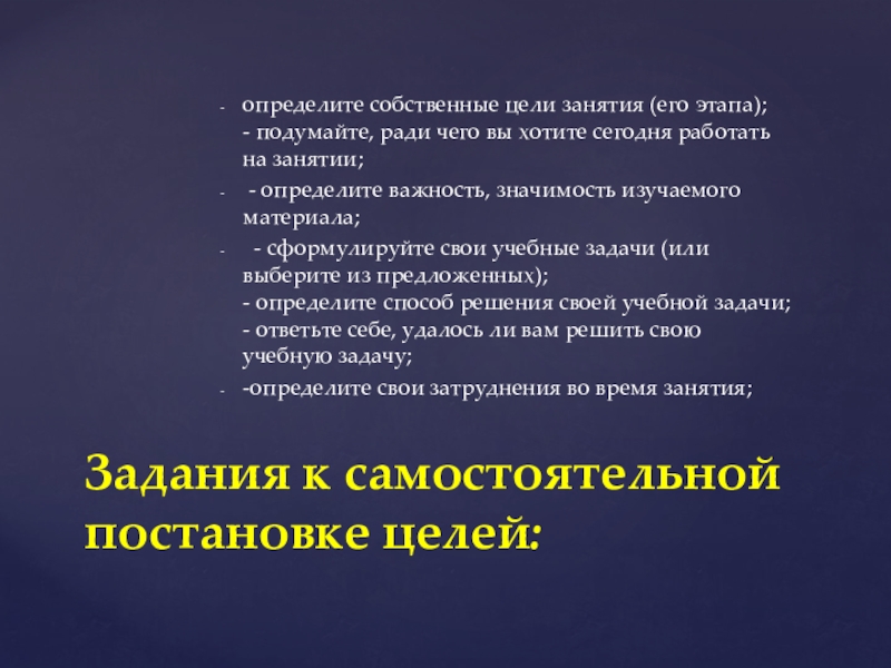 Задания к самостоятельной постановке целей: