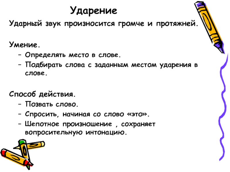Ударный звук произносится громче и протяжней.