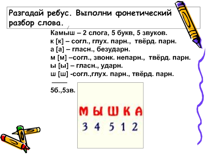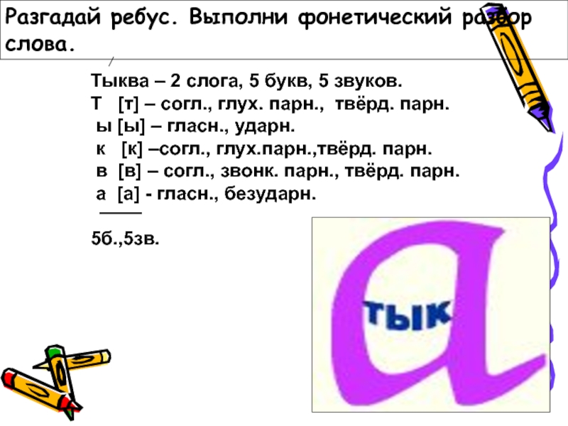 Слайд 20Разгадай ребус. Выполни фонетический разбор слова.