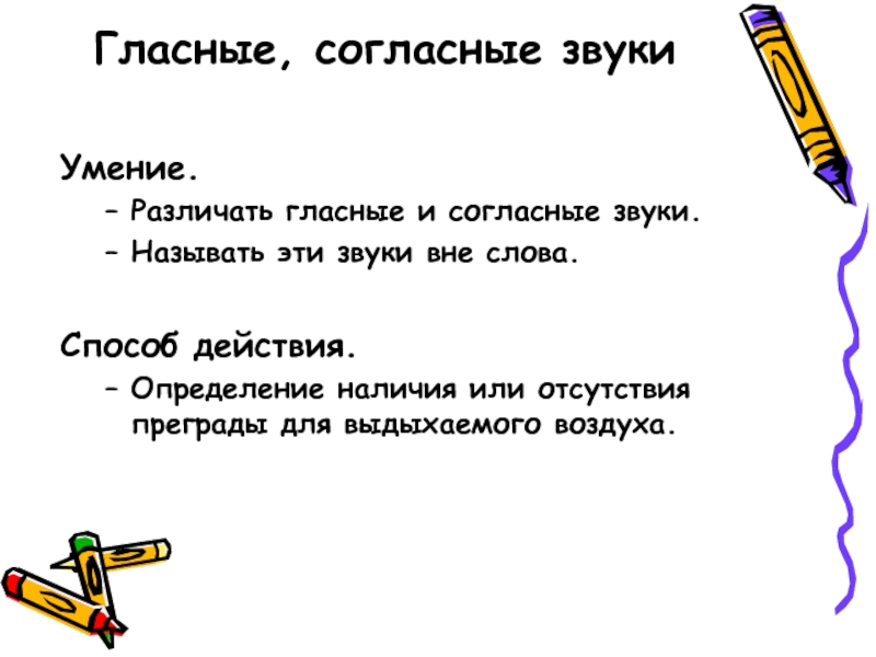 Различать гласные и согласные звуки.