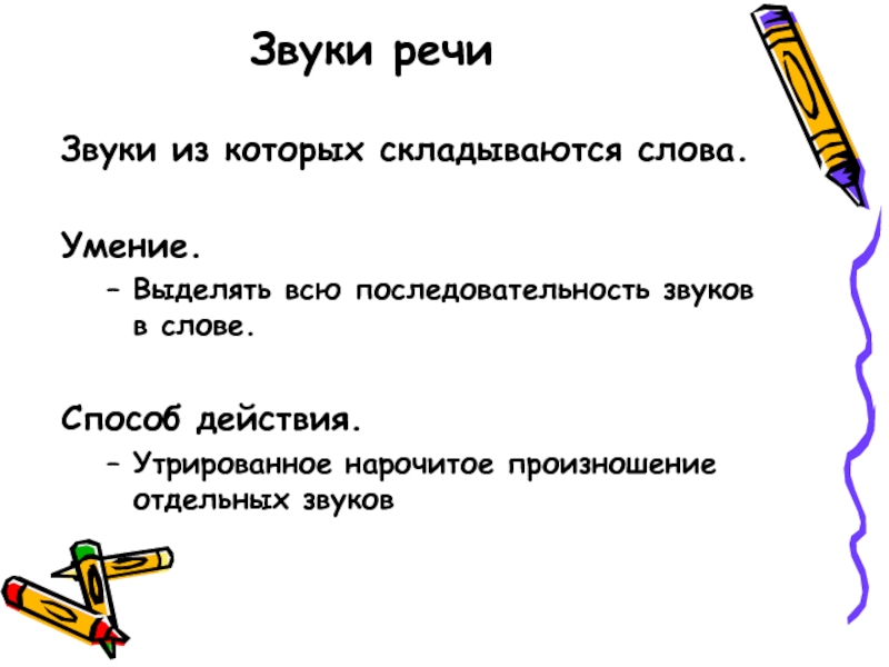 Выделять всю последовательность звуков в слове.