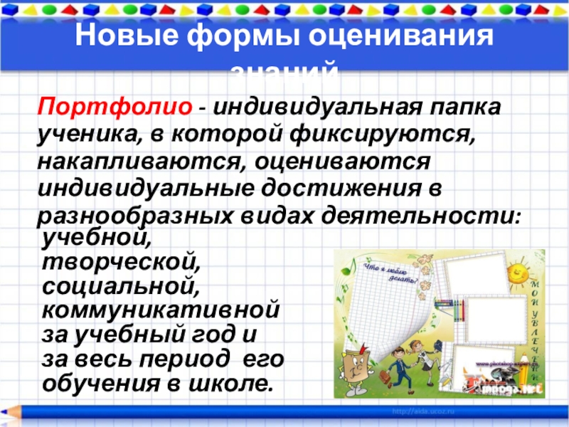 учебной, творческой, социальной, коммуникативной за учебный год и за весь период его обучения в школе.