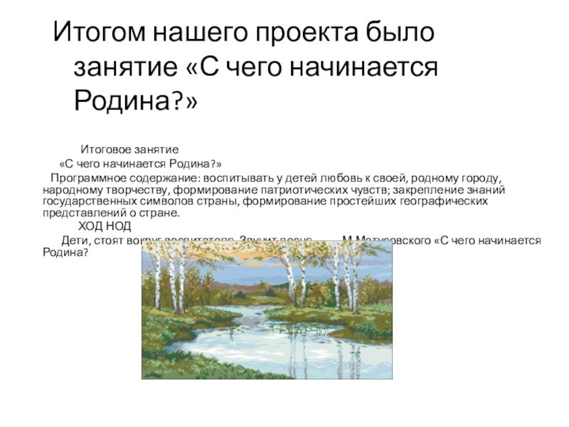 Итогом нашего проекта было занятие «С чего начинается Родина?»