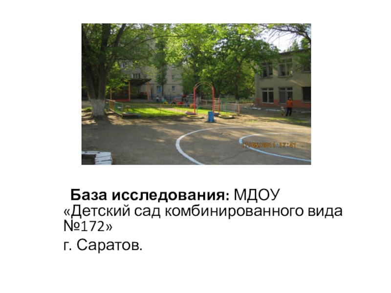 Слайд 8 База исследования: МДОУ «Детский сад комбинированного вида №172»