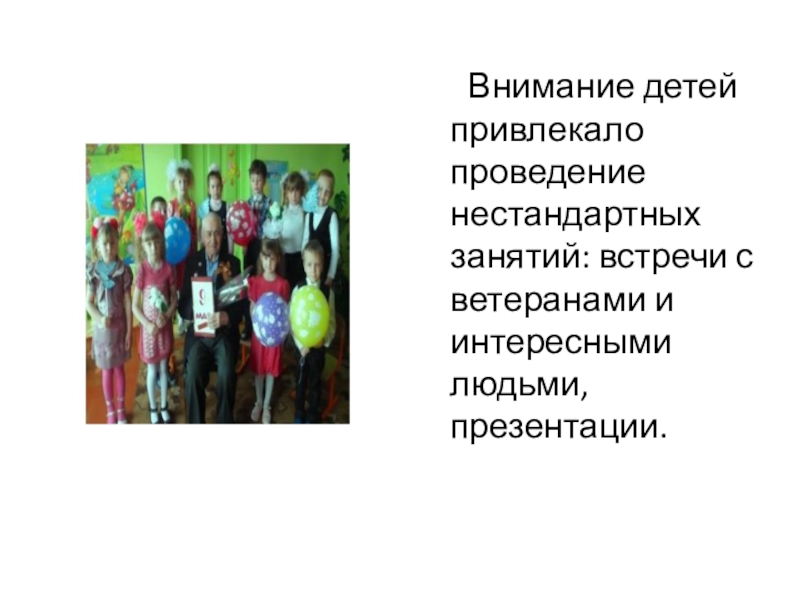 Слайд 31 Внимание детей привлекало проведение нестандартных занятий: встречи с