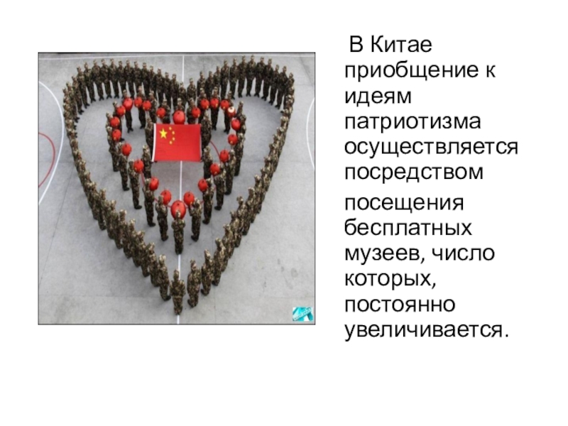 Слайд 14 В Китае приобщение к идеям патриотизма осуществляется посредством