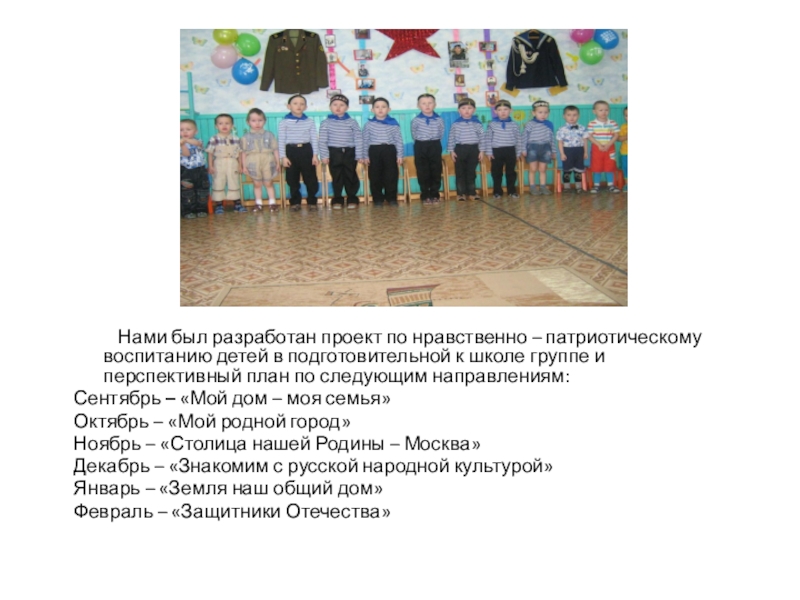 – патриотическому воспитанию детей в подготовительной к школе группе и перспективный план по следующим направлениям: