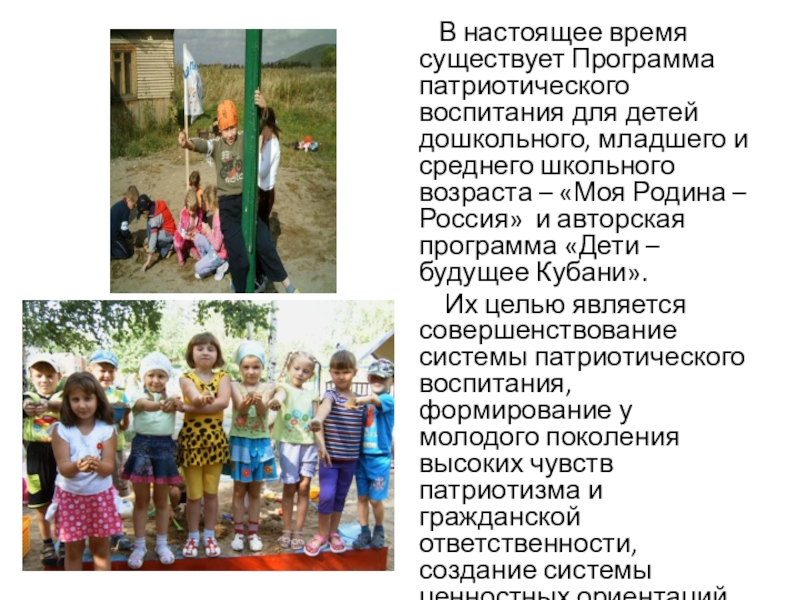 для детей дошкольного, младшего и среднего школьного возраста – «Моя Родина – Россия» и авторская программа «Дети – будущее Кубани».