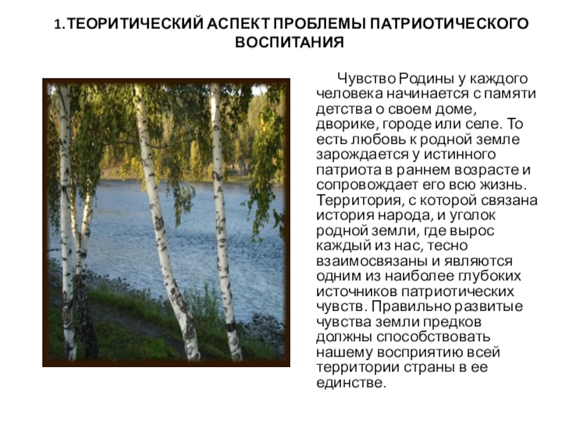1.ТЕОРИТИЧЕСКИЙ АСПЕКТ ПРОБЛЕМЫ ПАТРИОТИЧЕСКОГО ВОСПИТАНИЯ