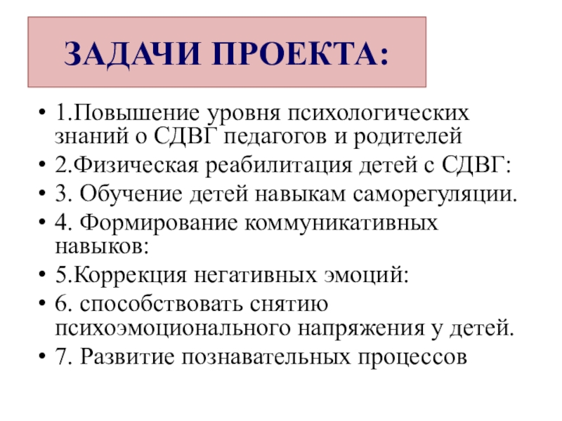 1.Повышение уровня психологических знаний о СДВГ педагогов и родителей