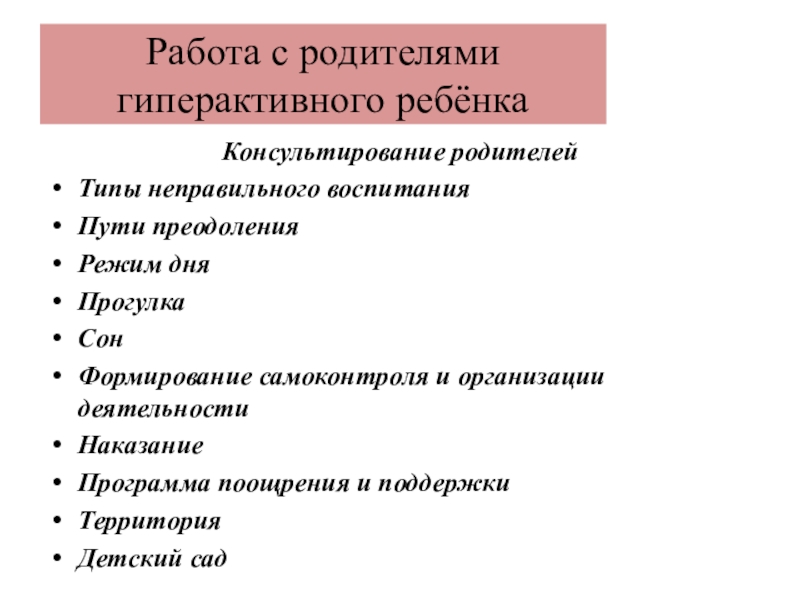 Слайд 11Работа с родителями гиперактивного ребёнка