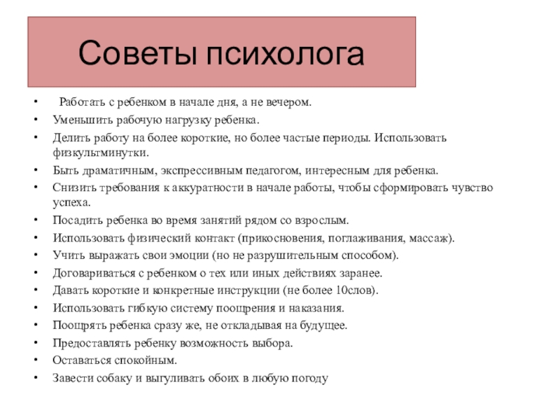 Слайд 13Советы психолога