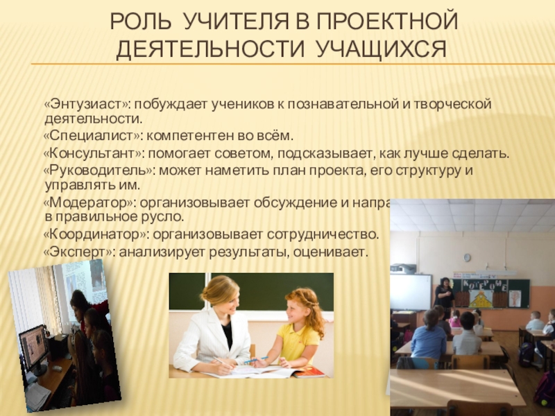 Слайд 7 Роль учителя в проектной деятельности учащихся