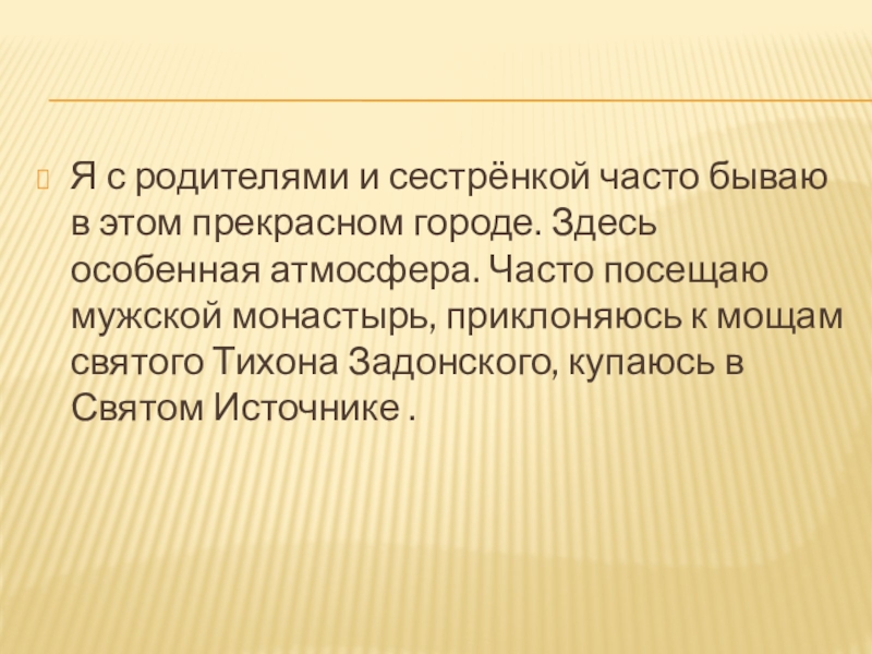 Слайд 20Я с родителями и сестрёнкой часто бываю в этом прекрасном городе.