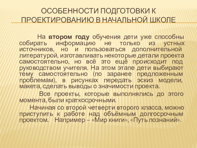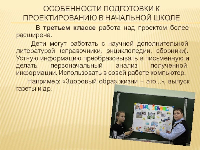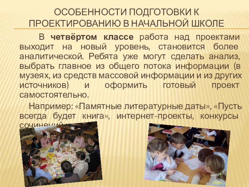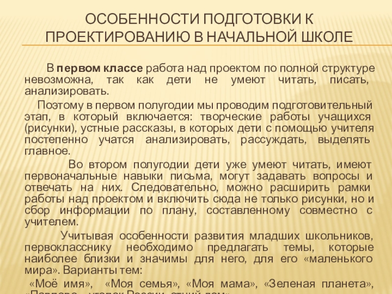 Слайд 8Особенности подготовки к проектированию в начальной школе