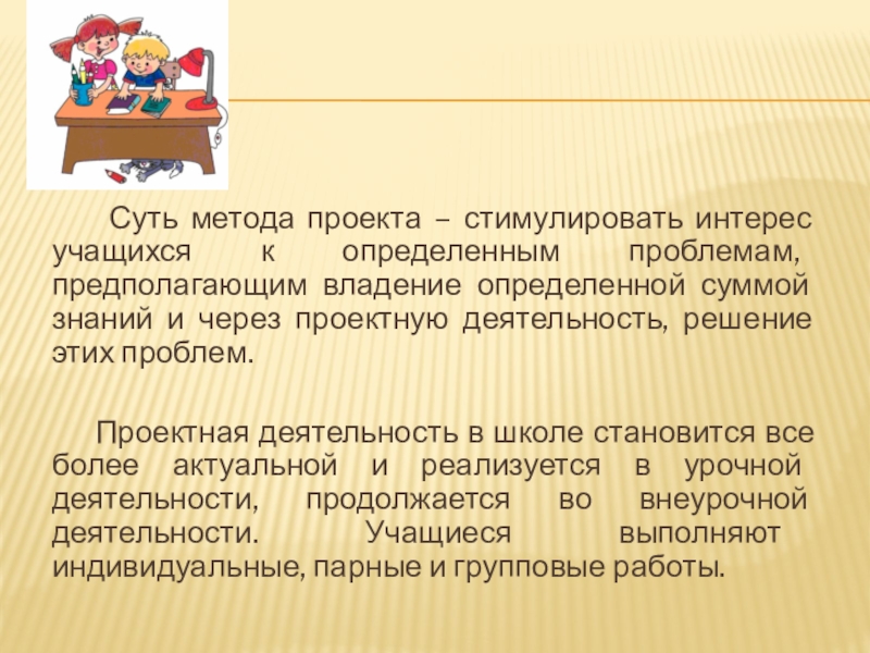 Слайд 4 Суть метода проекта – стимулировать интерес учащихся к