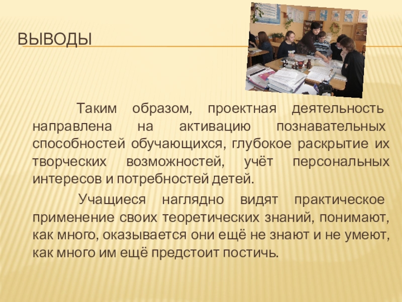 Таким образом, проектная деятельность направлена на активацию познавательных способностей