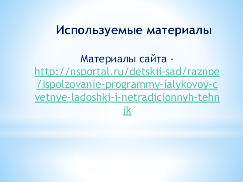 Слайд 21Материалы сайта - http://nsportal.ru/detskii-sad/raznoe/ispolzovanie-programmy-ialykovoy-cvetnye-ladoshki-i-netradicionnyh-tehnik