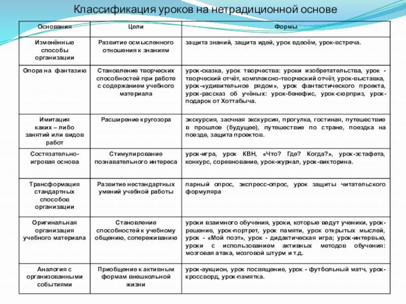 Слайд 9Классификация уроков на нетрадиционной основе