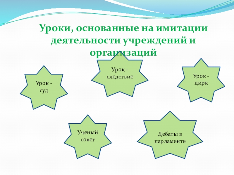 Слайд 24Уроки, основанные на имитации деятельности учреждений и организаций