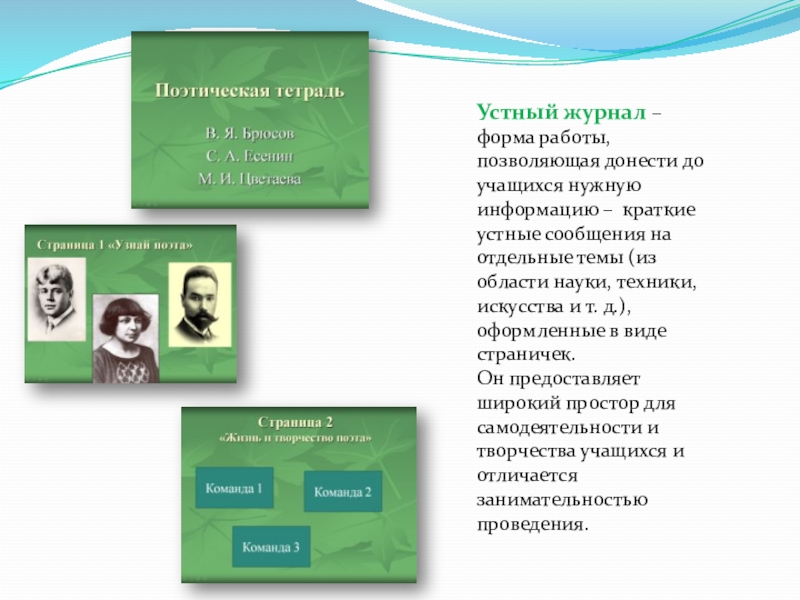 Слайд 18Устный журнал – форма работы, позволяющая донести до учащихся нужную информацию