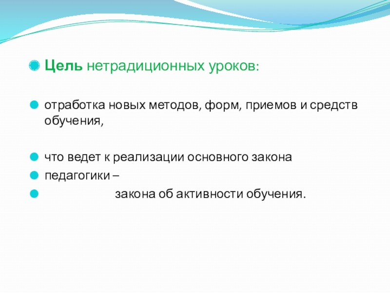 Слайд 5Цель нетрадиционных уроков: